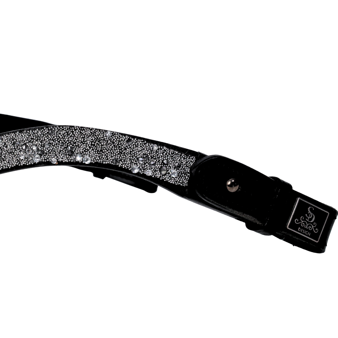 This elegant browband is covered in hundreds of sparkling stones in various sizes, catching the light from every angle and creating an exclusive, luxurious look. The gently curved design highlights the horse’s head, giving it a noble and sophisticated appearance.