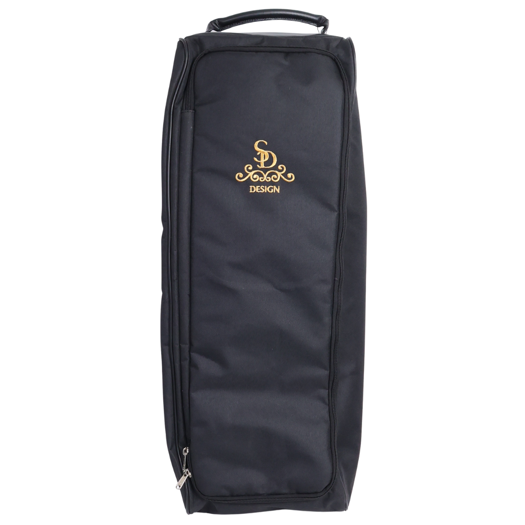 It also features an inner zip pocket for small essentials and a durable, water-resistant exterior with a PU leather base for easy cleaning. The elegant gold SD® logo completes the luxurious look.